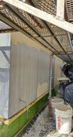外壁の仕上工事が進みます。外壁の3面目の終盤なのでかなり進みました。