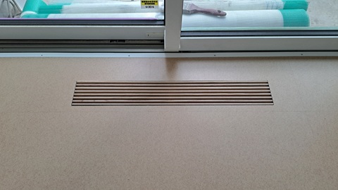 だいぶ前ですが床下エアコンの吹き出し口が出来ています。取り外し出来て、吹き出し量が多いと感じた時には厚紙を挟むだけで風量の調整ができます。アナログですが故障もなく確実な方法です。