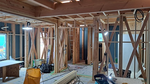 昨日は現場での打ち合わせ日でした。まだ耐震金物や断熱工事が中心ですが、打ち合わせの内容は物内部造作工事が中心です。
