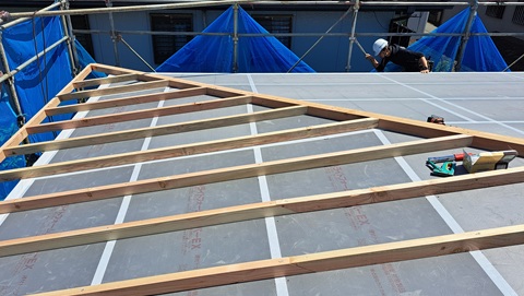 昨日の現場です。前回の屋根工事の写真から2工程進みました。