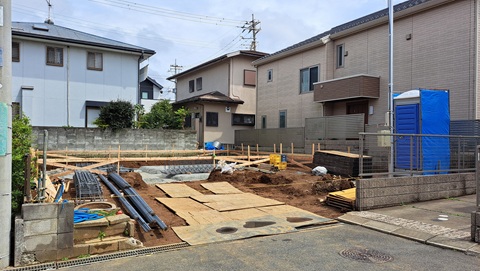 基礎工事が始まりました。近所なので散歩ついでに確認に行ってきました。休日なので誰もいません。地中梁がある部分が深くなっているのを確認し満足。