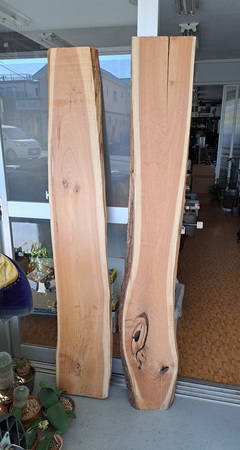 建て主さんの作業場にあるという銘木を見せて頂きました。階段の段板にしようと思います。階段といっても材の大きさとしては270mm×850mm程度は必要です。1枚でまともに採れるには1枚分ですが、継ぎ合わせて使えないかと思案中です。