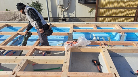 新年は玄関内の土間コンクリートを打設し外回りの設備配管などを進め、1月末に上棟の予定です。