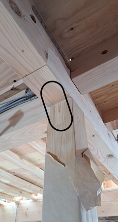 化粧柱・化粧梁に耐震用の小さな金物を付ける必要がありました。