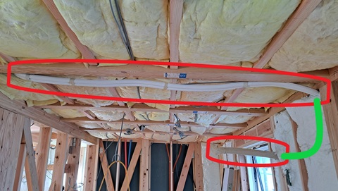 ・赤く囲った天井に見えている部分はこのあと天井を張って隠します。