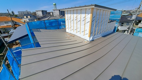 屋根工事が進みます。屋上の塔屋があったり、屋根を湾曲(反り上がります)させるため工程が複雑です。