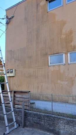 築17年の我が家です。8年位前にもっと汚い状態になり洗浄を行いました。最近まで気にならなかったのですが・・急に汚れが進んがような・・前回はカビを化学変化で除去する薬剤を塗布しましたが、今回は先ず洗浄を行いました。玄関前のタイルは毎年高圧洗浄機できれいにするのですが、ことしはプラス2時間で東側と南側の半分(庇が掛かっていない部分)も洗浄しました。年内に薬剤の塗布も行うつもりです。