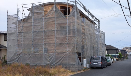 定例打合せ。外壁下地の杉板をほぼ貼り終えました。目標は12月いっぱいで左官工事を終えること。1月になると寒い日が増え、凍結の恐れあり・・凍ってしまうと色むらになることもあるので要注意です。終わりが見えてきて寂しくもあり・・