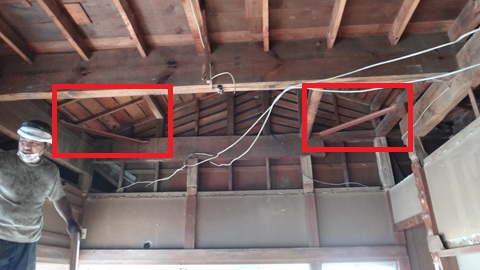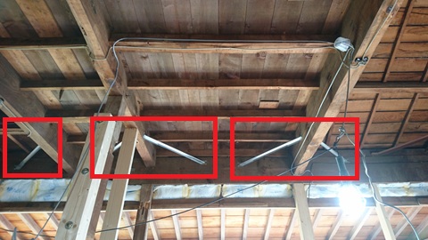 1.で紹介した火打梁(赤枠)を増やした様子が分かる写真です。