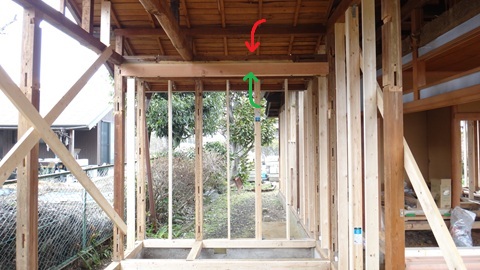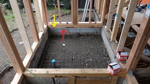 赤矢印は今回新たに造った基礎で、黄矢印は新たに入れた土台です。