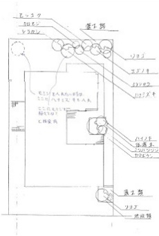 建物の配置図に簡単に○と木の名前が書き込まれているだけですが、それぞれに意味があります。建て主さん用には解説文も添付してあります。時間を確保し、メインの数本については畑を見て回りたいと思っています。