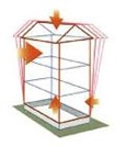 建物自体の重さ、積雪や瓦など屋根にかかる重さや、人や家具などでかかるすべての重さ(重力)に耐え得る構造設計をします。