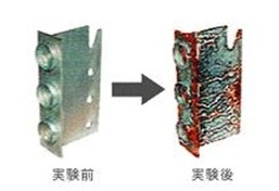 SE構法では金物全てに自動車のシャーシ等に用いられているカチオン電着塗装で何度もコーティングし、錆対策も万全です。塩水噴霧試験においても1000時間塩水を吹き付け表面の状態を調べた結果、表面の一部に極小な劣化は見られたもののほとんど試験前の状態と同じ品質レベルを保ちました。この試験時間は、一般住宅の場合100年分の負荷を掛けた状態に相当します。