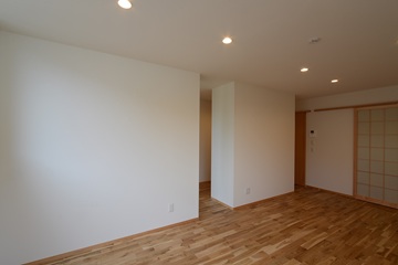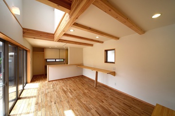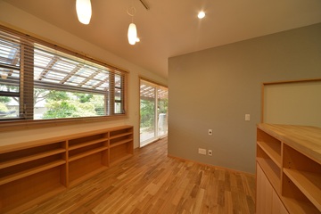 建て替え前は部屋が細かく仕切られていて北側の部屋が暗いことに困っていましたが、その点は大きく改善され明るく風通しの良い家になりました。セルロ-ス断熱のおかげで家の前の公園からの音が気にならなくなりました。断熱性が高いのも気に入っています。小さな赤外線ヒ-タ-ひとつでもかなり有効に効きます。