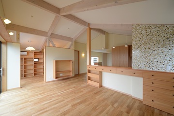 まず、プランについては熟慮し何度も修正していただきながら最終案にたどり着きました。2階のダイニングキッチンからの眺めや風通しがとても良くその点が気に入っています。断熱材や建材などは製造時のエコと住んでからのエコの両面から検討しアドバイスを頂きながら選定しました。建て主の要望に対し、防音室や将来のバリアフリーに向けての対策から細部に至るまで、あらゆる面から調べた上でプロとしてのアドバイスを頂くことができ、安心できました。