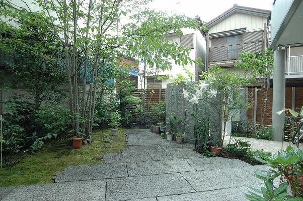 昔の漁師町でコンパクトな街路。防犯を考慮しつつ庭や玄関は完全に閉じないようにし、それでいてプライバシーは保たれるよう石の列柱と植木を注意深く配置しました。