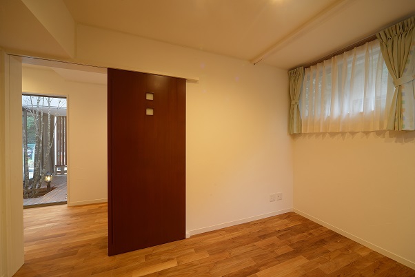 個室や浴室は1階ですが中庭から光が入るため明るく、蓄熱式床暖房の設置により寒さを緩和しています。また道路からの視線を遮りつつ防犯を考慮し、ある程度開放的に内部を見せるよう計画し、昼間でもカーテンを締め切らずに過ごせるようになっています。風通しの良さを意識した設計と高い位置にある窓を開け熱気を抜くことで、夏季のエアコン利用を減らす効果があります。