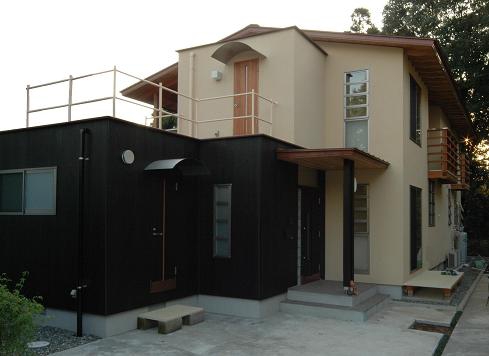 夏の日差しを遮る深い庇は有効で、2階のベランダも涼しく快適。落ち葉対策として屋根に樋はありません。深い庇がここでも役割を果たしています。