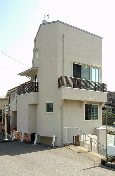 12坪の敷地に車庫、坪庭、屋上庭園、3階建てでも4層・・・工夫いっぱいの家。