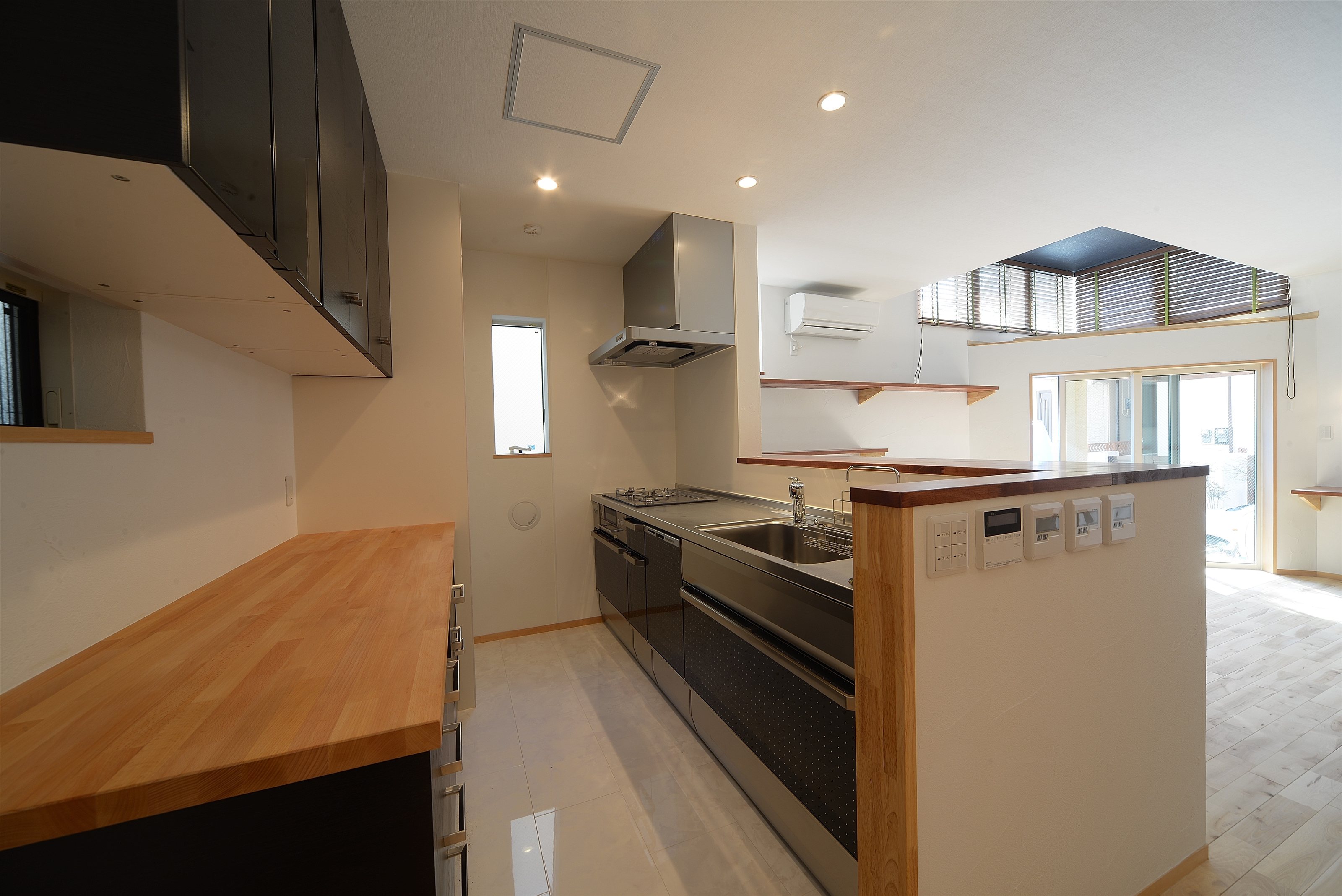 システムキッチンW=2,550、ハーフユニットバス |