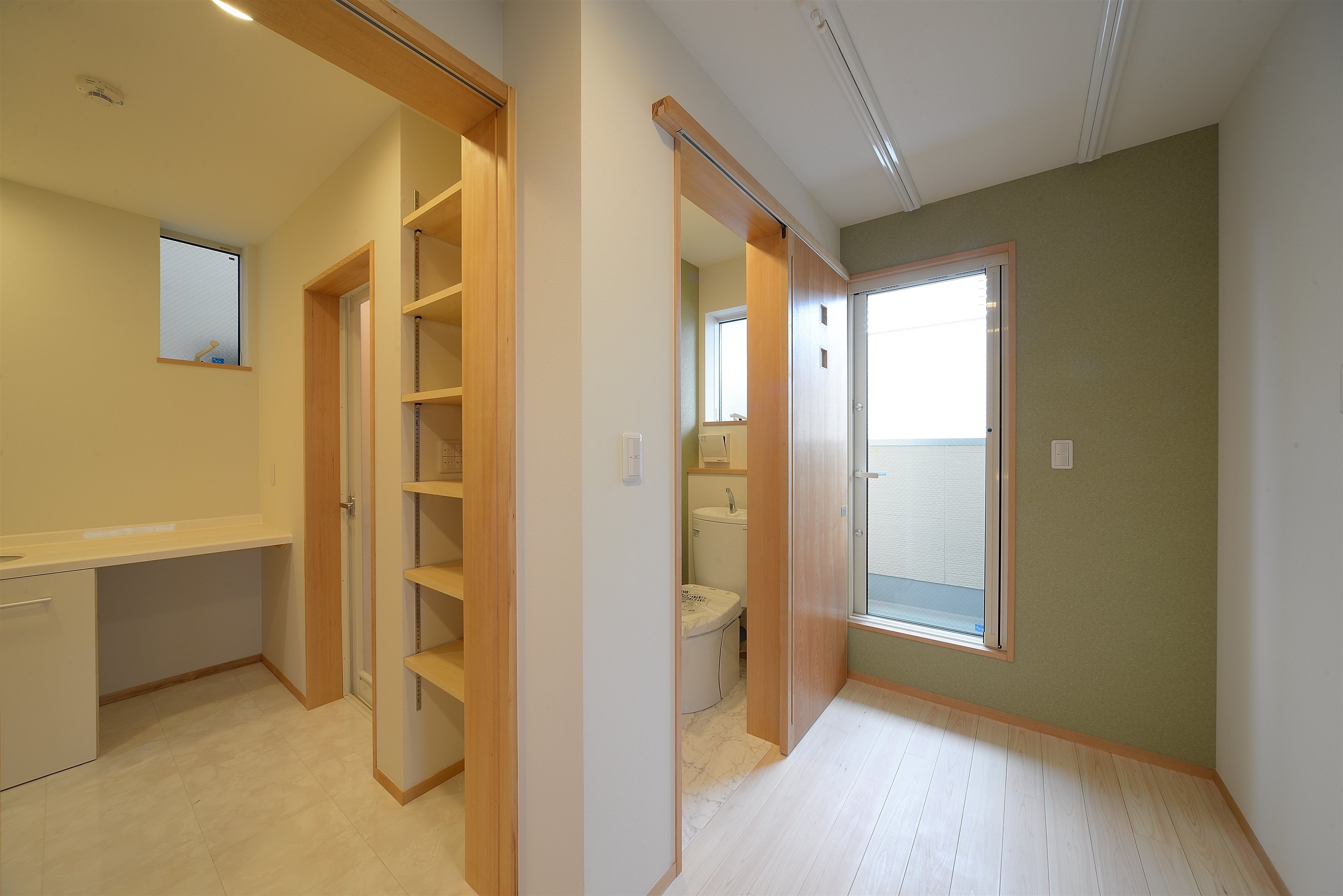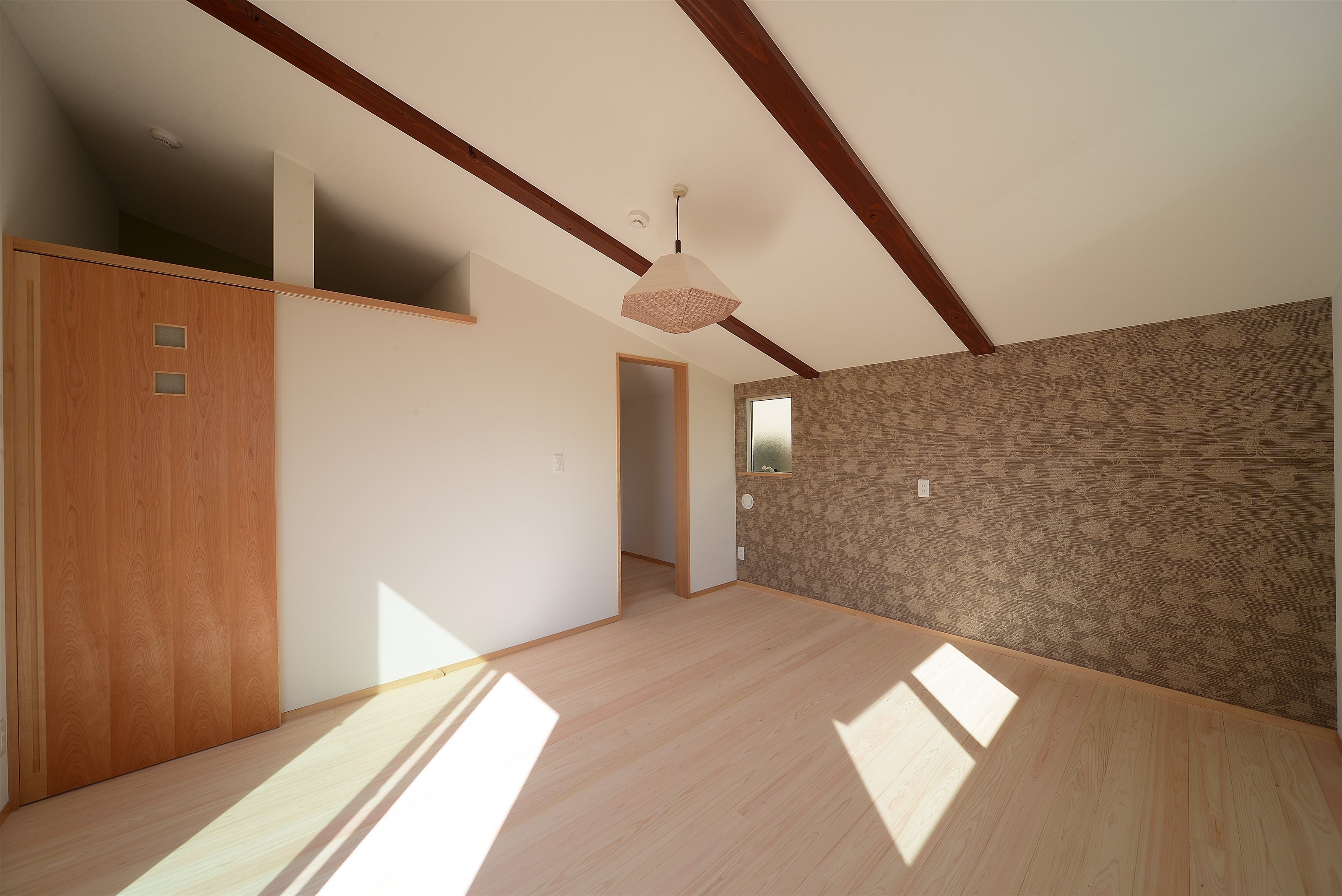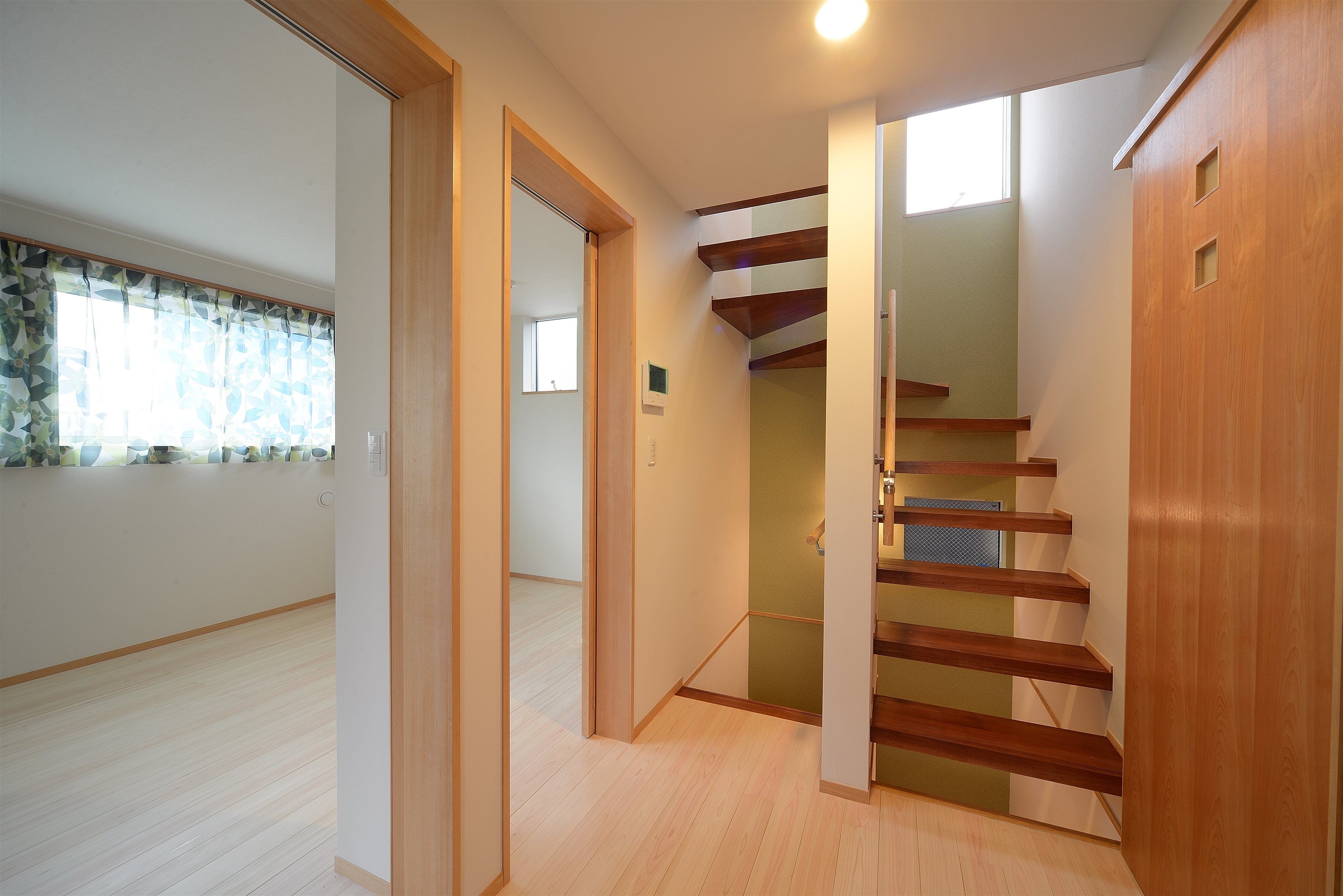 内装は床にサクラ材とヒノキ、壁はドイツ漆喰と壁紙、浴室の壁、天井にはヒノキ板を採用。断熱材はペットボトルのリサイクルウールです。施工精度が高く、製造過程でのエネルギー消費も抑えられているのでエコに優れた住まいと言えます。
