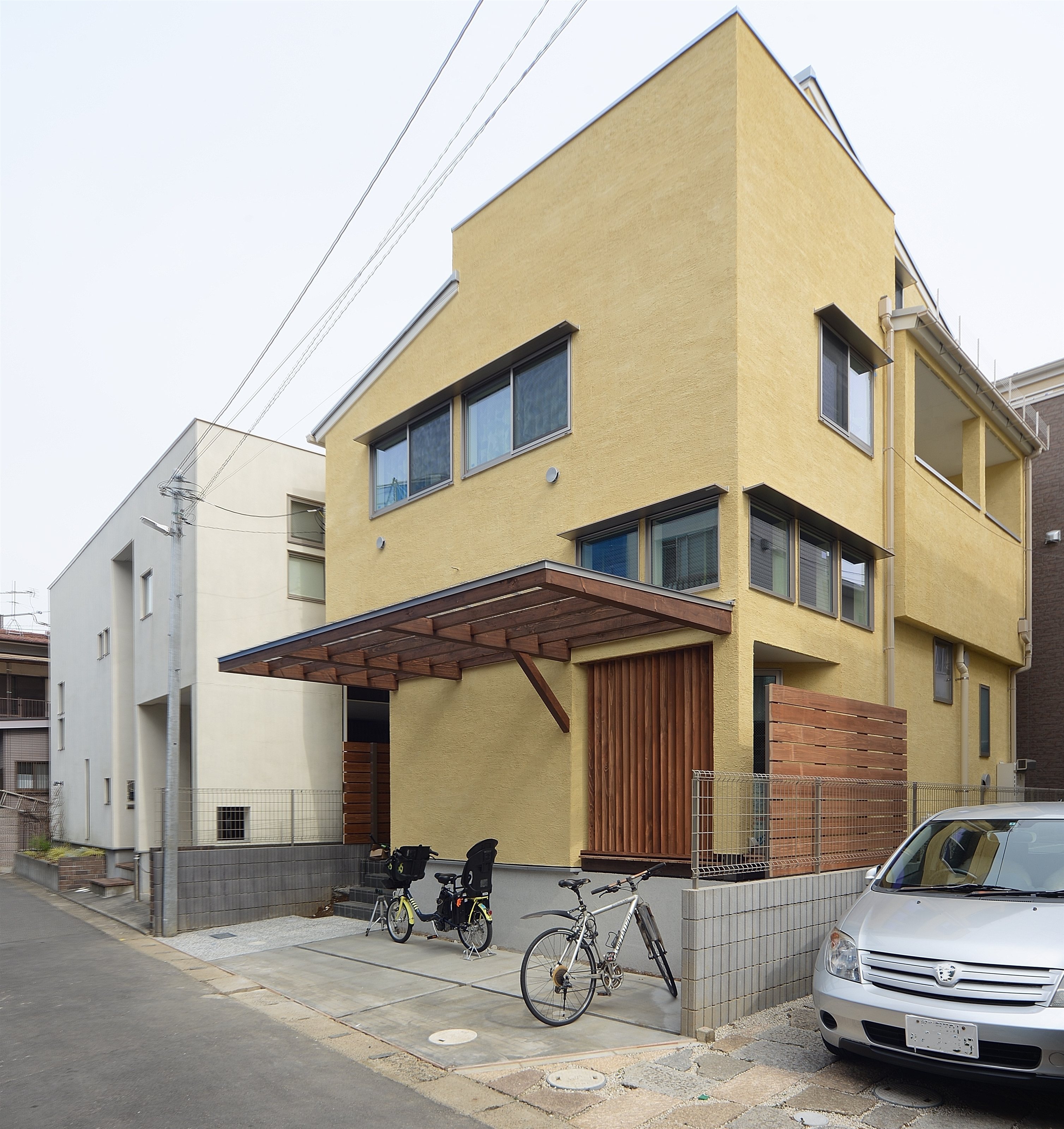 駅に近い住宅街に建つ3階建ての住宅。