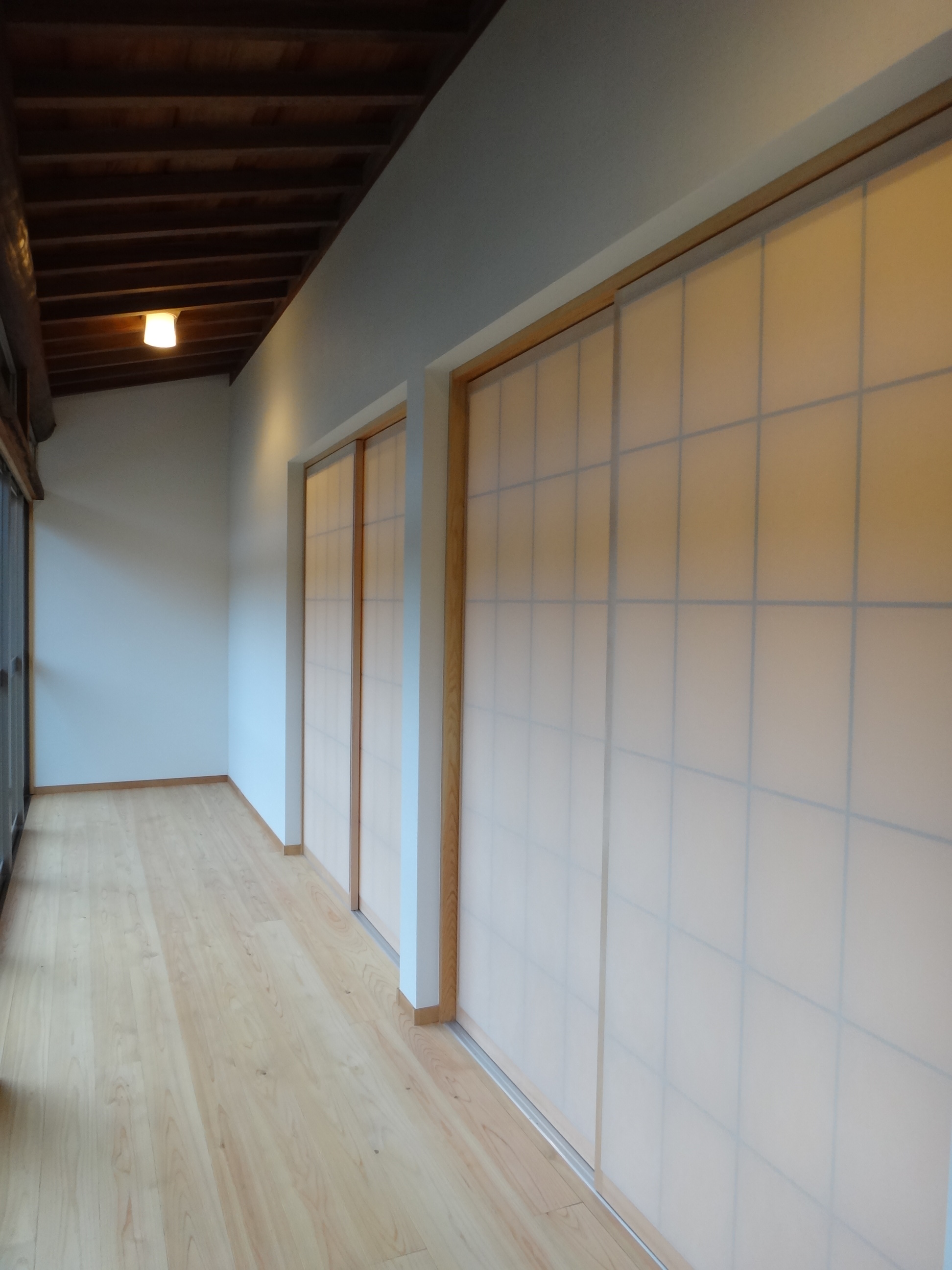 具体的には二間続きだった6畳と8畳の和室の間に壁(耐震壁)を設け、独立した和モダンな部屋にしました。南側にあった廊下には断熱サッシを入れ、暖かいサンルーム的な廊下に改修しました。