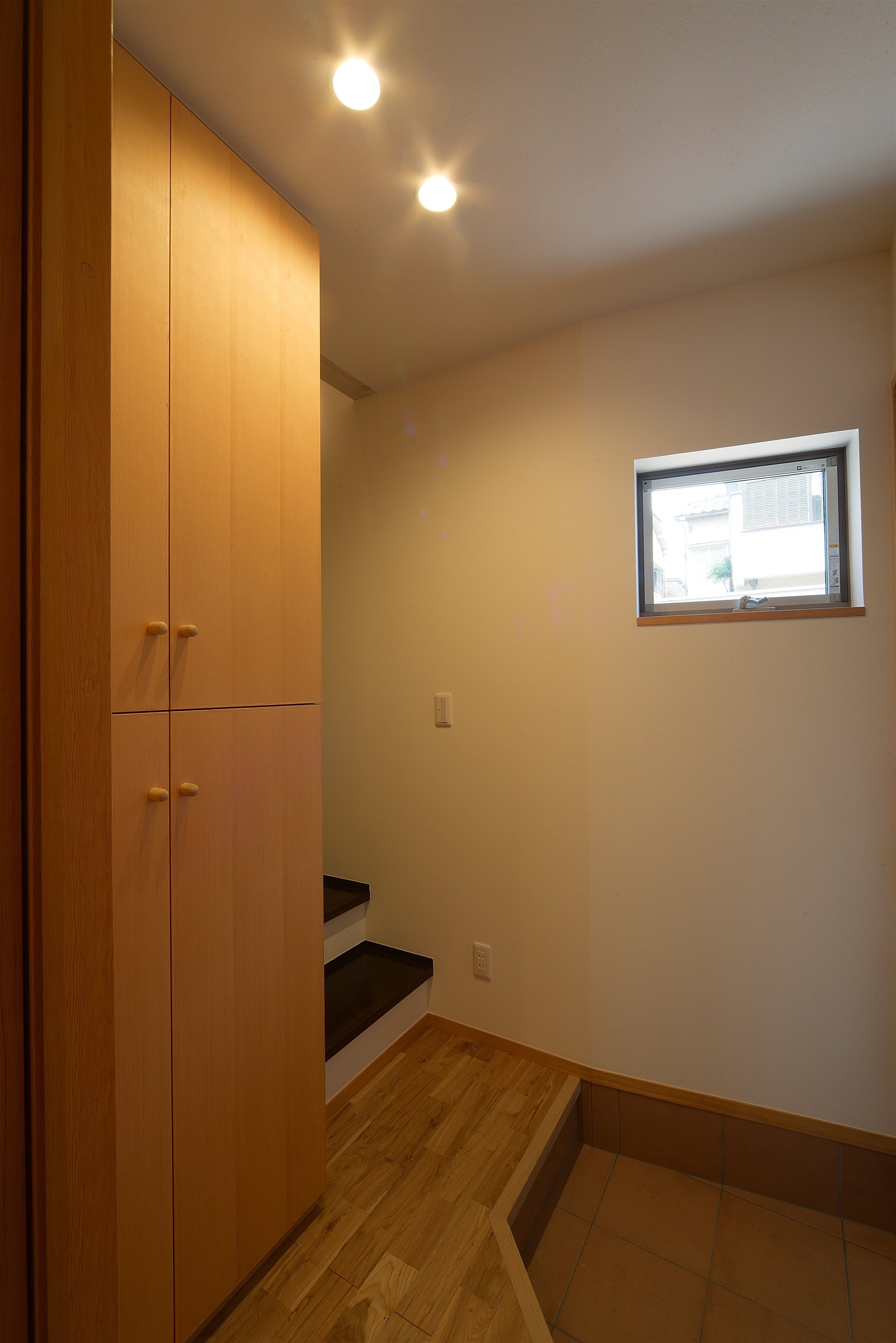 駅から近く、古い住宅街にある22坪のコンパクトな敷地に建つ二世帯住宅です。許容延床面積は120㎡(36坪)と二世帯住宅にしてはコンパクトに納める必要がありました。
