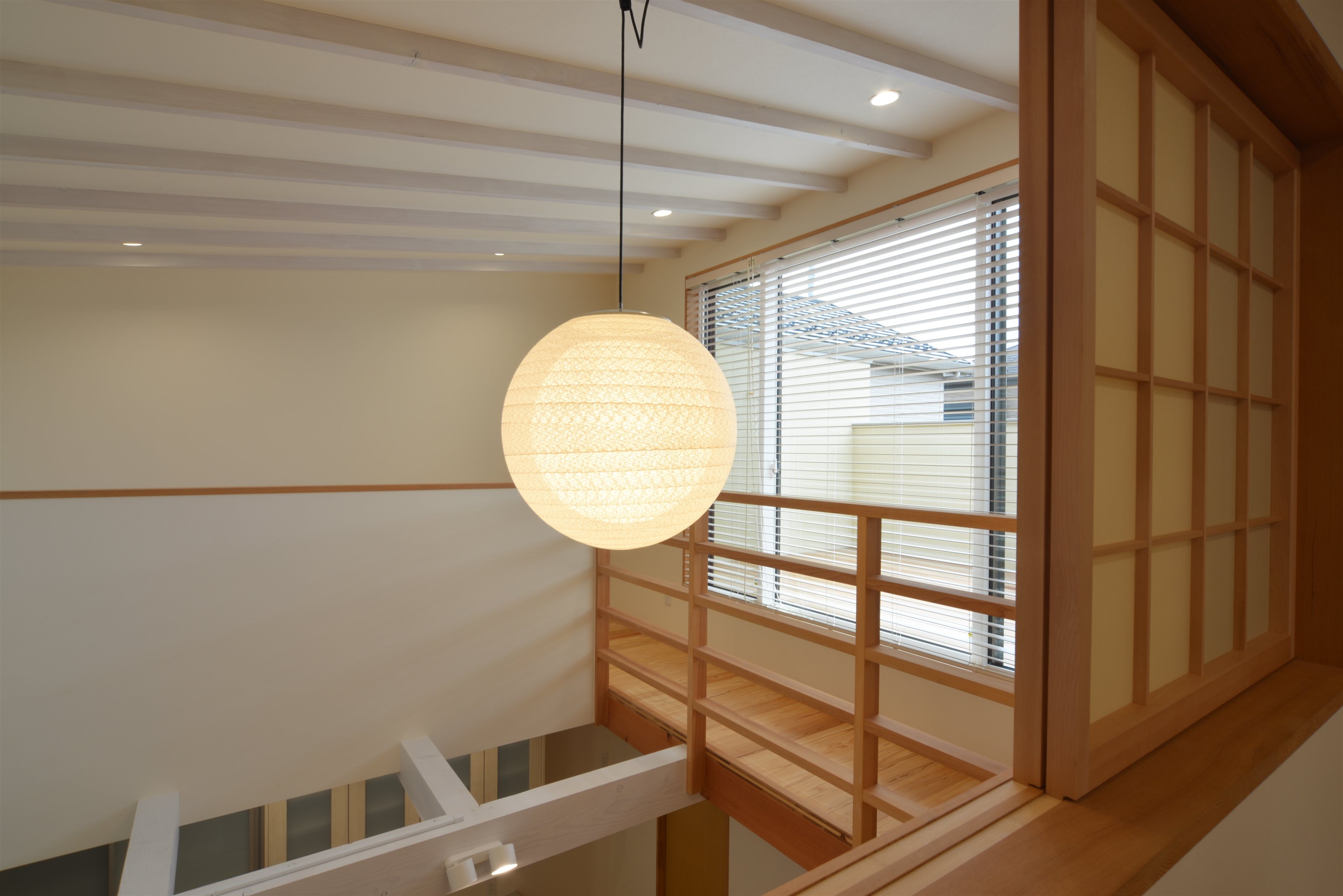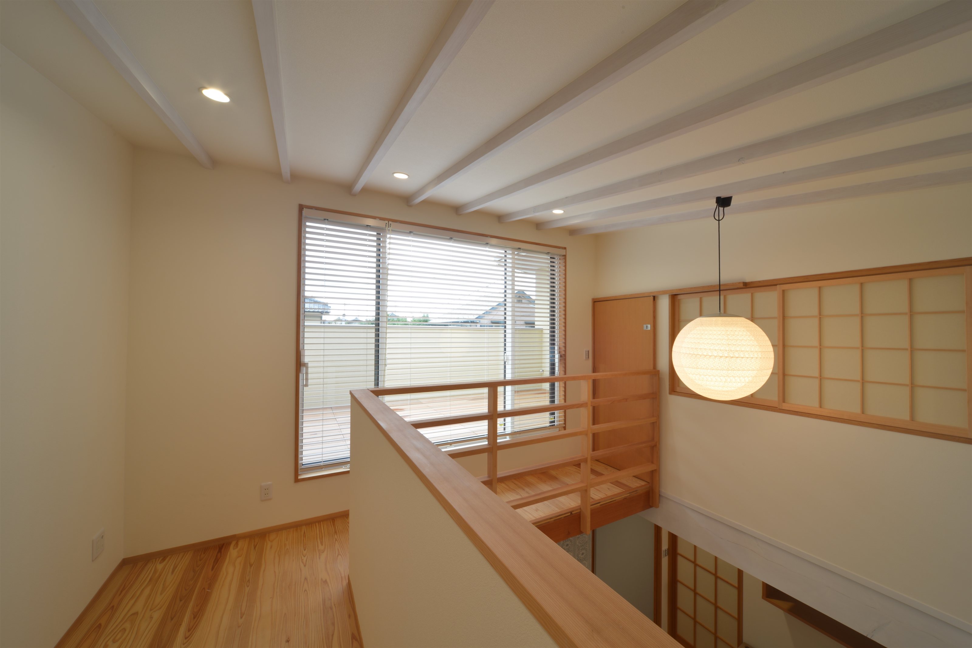 2階ベランダの腰壁を少し高くすることでプライバシーを確保しつつ、冬でもブラインドを上げたまま大きな窓から長い時間陽を採りこむことが出来、家に中を温め、明るくすることが出来ています。