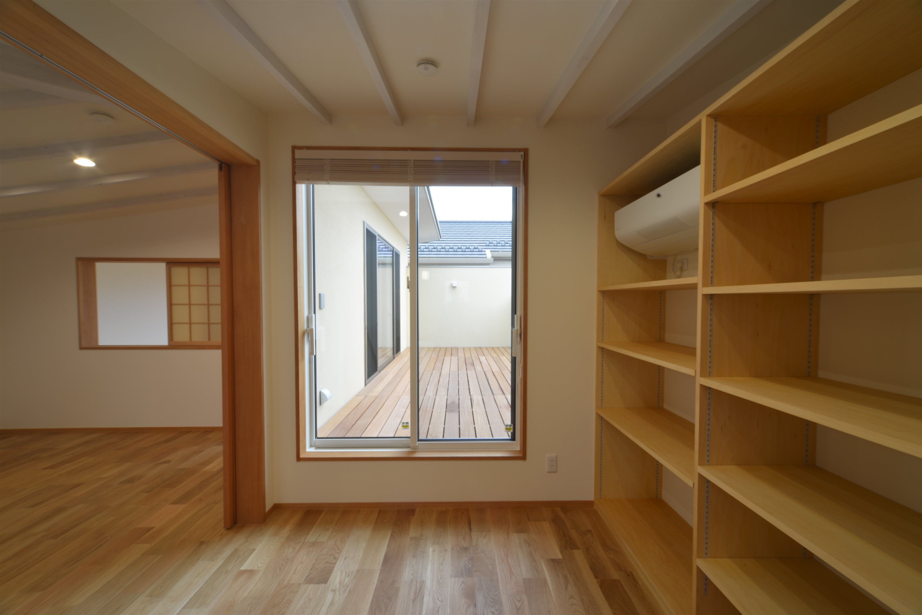 2階でも園芸が楽しめるよう広いベランダを設けました。ベランダを中心にホール(大きな手洗いシンクがあります)・吹き抜け・図書コーナーがあり明るく快適なスペースで園芸や趣味を楽しむことができます。
