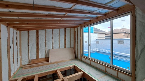 あとは窓が付けば一安心で、断熱、内部造作工事へと続きます。