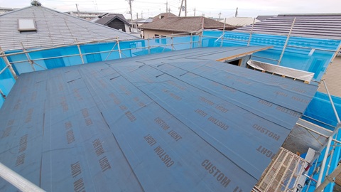 昨日の現場です。前回の屋根工事の写真から2工程進みました。