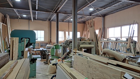 造作材(ドアや窓枠など)や建具(扉)も既製品の利用・加工の外注化が進み、工務店でも作業場をもったいないケースが増えてきましたが今回依頼するN工務店さんは資材置き場と加工場(作業場)を敷地内に別々に所有しています。