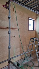 そういえば先日、密測定を行い結果は0.49でした。気密住宅と呼ばれる建物の数値基準は5以下とされ、1.0から0.5以下が高気密住宅と言われています。厳密にいうと給水管の周りのシーリングなど未施工な部分があったのでもう少し改善するはずですが先ずはOKです。今後さらに設備配管の孔が増えるので都度きちんと施工していく予定です。デザインの良し悪しは好みによる部分も多いかと思いますが、数値で表される性能値ははっきりしています。